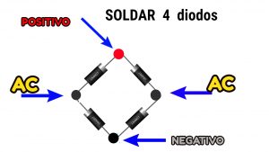 Para conectar un puente de rectificador usaremos los terminales marcado como positivo y negativo